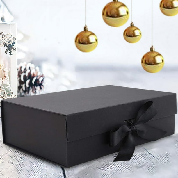 15 Cajas De Regalo Negras Con Lazo – 27x20x8 Cm, Plegables, Para Bodas, Cumpleaños Y Eventos
