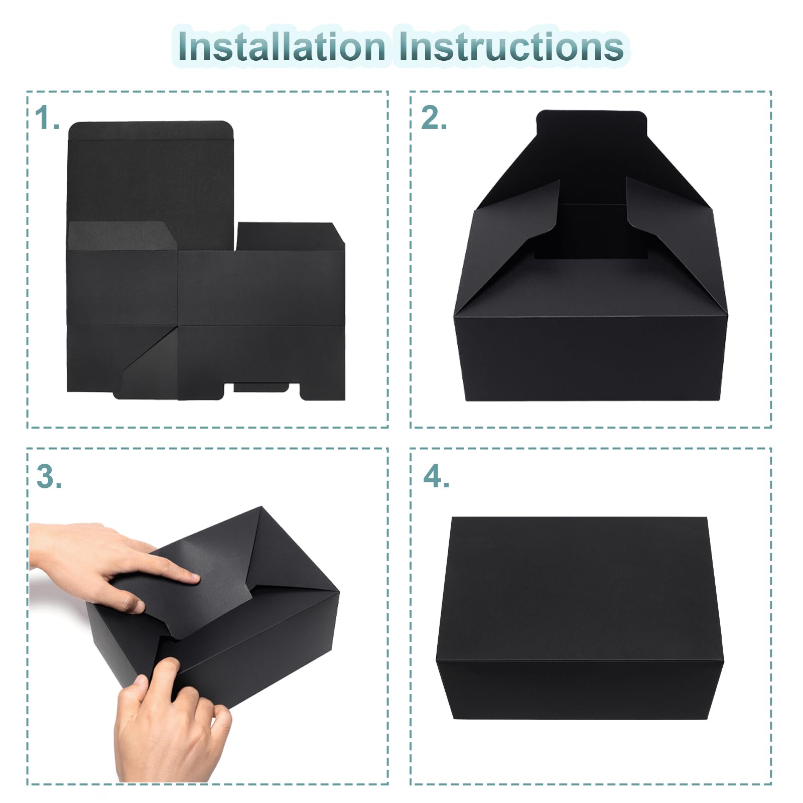 ¿Tienes muchos regalos que envolver para una boda, cumpleaños o Navidad? Este pack de 15 cajas negras con lazo te salvará. Cada caja mide 27 cm de largo, 20 cm de ancho y 8 cm de alto, un tamaño bastante amplio que vale para muchas cosas: perfumes, cosméticos, joyas, libros, dulces, velas, bombas de baño… Vienen con su tapa y una cinta negra para decorar (15 cajas y 15 lazos). Lo mejor es que son plegables: vienen planas, con las líneas de doblez marcadas, así que las montas en un minuto y ahorras un montón de espacio al guardarlas. Están hechas de cartón resistente, lisas por fuera (puedes personalizarlas con rotuladores o pegatinas si quieres), y tienen un aspecto elegante y moderno. Perfectas para eventos especiales, baby showers, Halloween o simplemente para dar un toque más bonito a tus regalos. ¡Practicidad y estilo en uno!