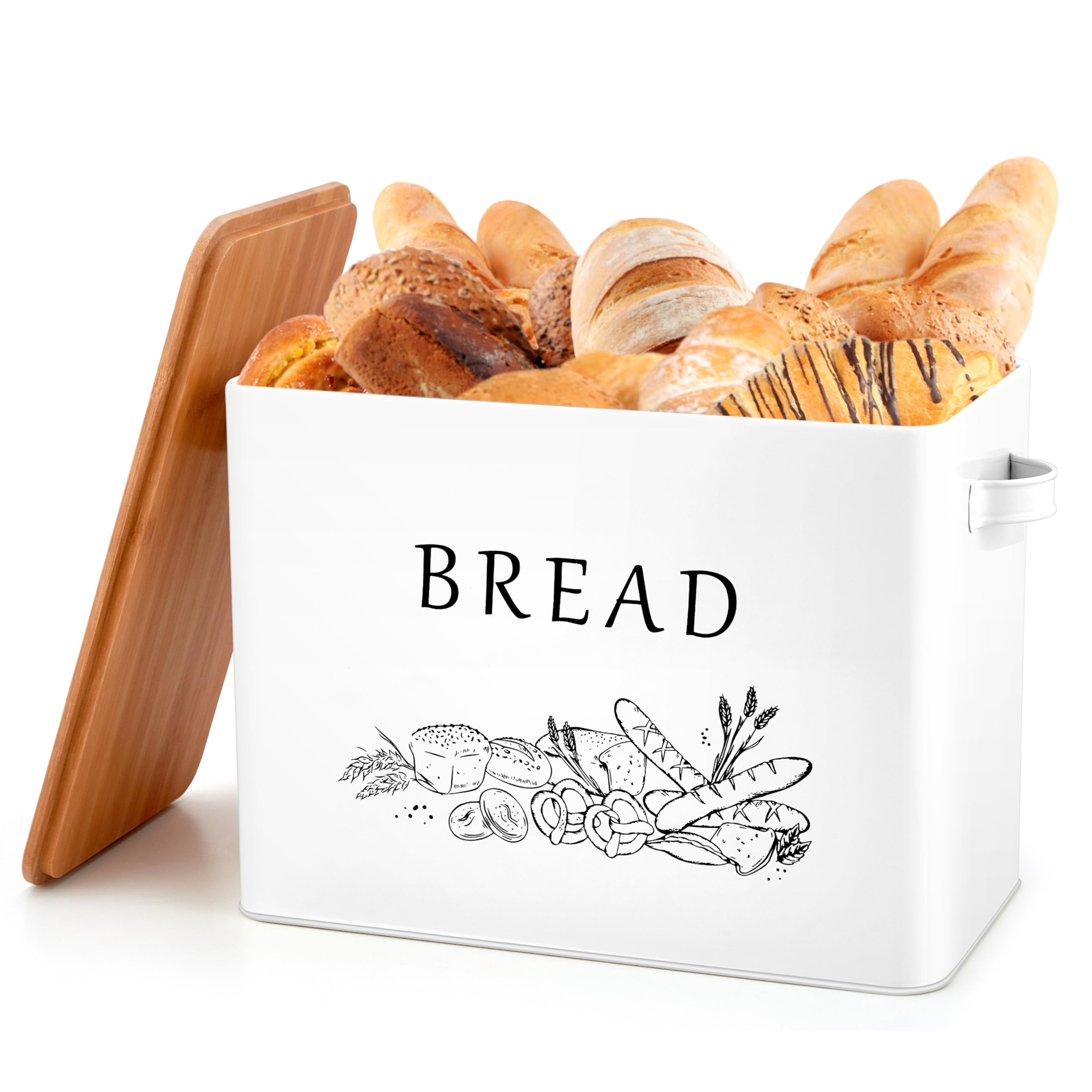 ¿Cansado de que el pan se ponga duro o de tenerlo desperdigado por la encimera? Esta panera Herogo es grande, bonita y práctica. Mide 33x19x24,5 cm, así que caben hasta dos barras de pan largas, bollos, galletas… Lo que sea. Está hecha de acero con recubrimiento de grado alimenticio (seguro y resistente al óxido), con una tapa no hermética que deja respirar al pan para que se mantenga fresco más tiempo. Tiene asas laterales para moverla fácil. Viene en varios colores (negro, blanco, azul, crema) con un estilo vintage que decora tu cocina. Fácil de limpiar con un paño húmedo. ¡Organiza tus alimentos secos con estilo!