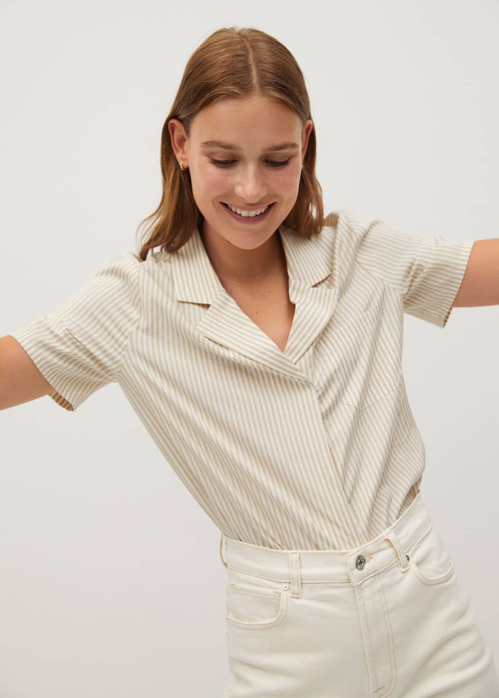 Es superversátil: la puedes llevar con vaqueros para un look casual, con un pantalón de vestir para la oficina o incluso con una falda para una cena informal. El lino tiene esa textura natural que le da mucho estilo sin necesidad de planchado perfecto.