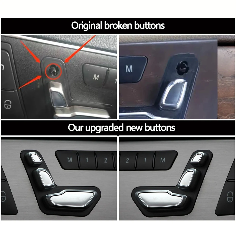 ¡Hola, dueño de un Mercedes! ¿Se te ha roto o desgastado la manija de ajuste del reposacabezas del asiento? Este repuesto es compatible con muchos modelos: Clase C W204, Clase E W212, GLK X204, Clase E Coupé W207, ML/GLE/GL W166 (entre 2007 y 2019). Está hecho de material ABS, color plata, y es un reemplazo directo (número de referencia 2129059700). Solo tienes que quitar la pieza vieja y poner esta nueva, sin modificaciones. Protege el botón del desgaste y mejora el aspecto interior. ¡Fácil instalación y tu asiento quedará como nuevo!