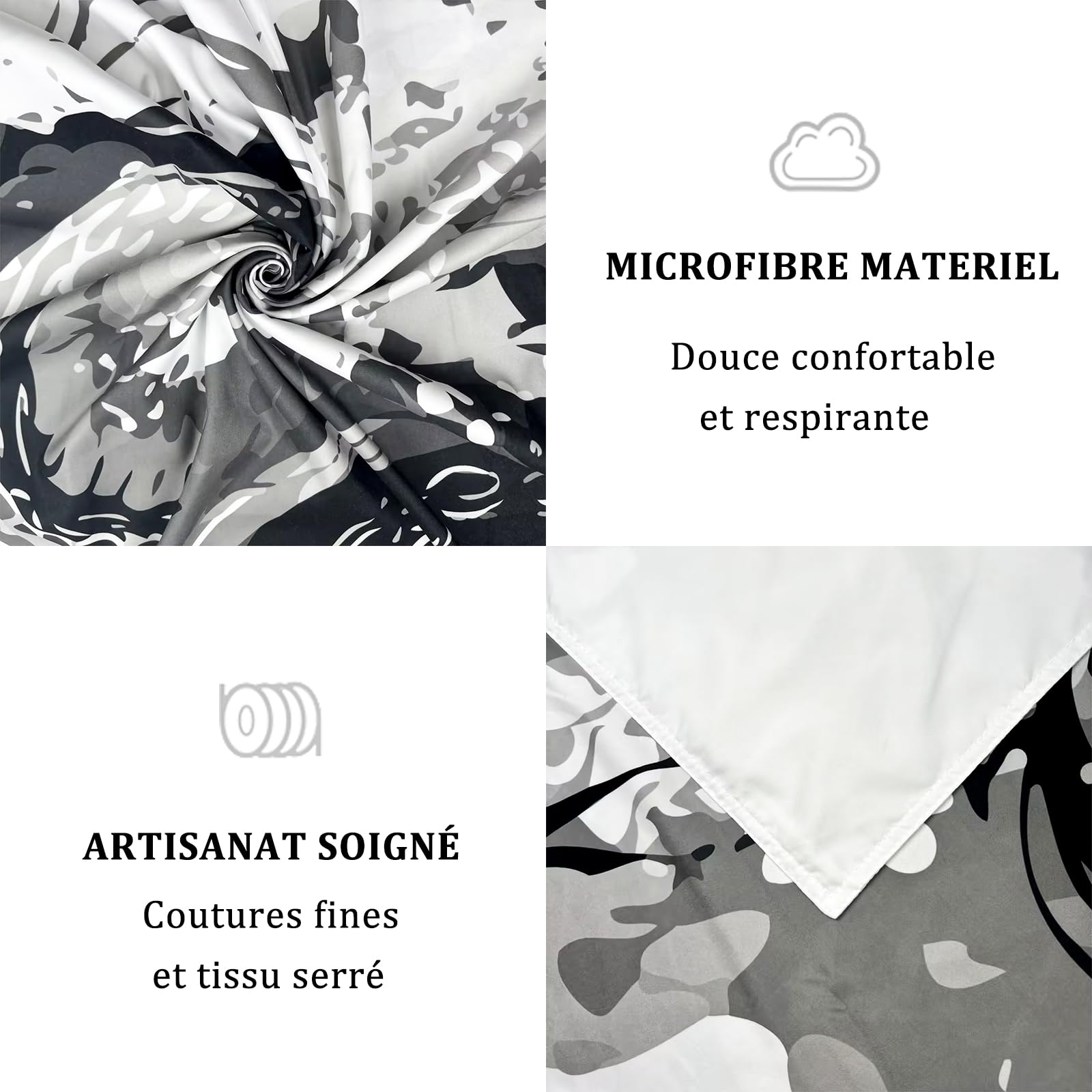¡Este juego de cama de 3 piezas con un dragón negro japonés es una pasada para darle personalidad a tu dormitorio! Incluye una funda nórdica de 150x220 cm y dos fundas de almohada de 50x75 cm. Está hecho de microfibra de 110 gsm, super suave al tacto, hipoalergénica y cálida, ideal para todas las estaciones. La funda nórdica tiene cremallera para ponerla y quitarla fácilmente del edredón, y además lleva 4 lazos en las esquinas para fijarla y que no se mueva. El estampado del dragón es detallado y con colores vibrantes, dando un aire exótico y moderno a la habitación. Es fácil de cuidar: lavable a máquina en agua fría y se puede secar en secadora a baja temperatura (sin usar lejía). Perfecto para regalar en ocasiones especiales, para fans de la cultura asiática o para cualquiera que quiera salirse de lo común en su decoración. ¡Duerme con estilo!